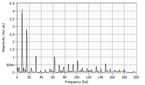Figure 3. Top- Triplex pump without countermeasure on discharge side. Bottom – Triplex pump (different size and manufacturer) fitted with a bladder on its discharge side. We can see from the autospectrum that the bottom pump example has a smoother operation, as its fundamental (3rd Order) component is stronger than other pump orders, while the top example shows a dominant 6th pump order. A Triplex pump should have 3rd and 6th pump Orders of similar strength. The top figure example is likely a situation where pulsation affects pump operation. (Click figure to expand)