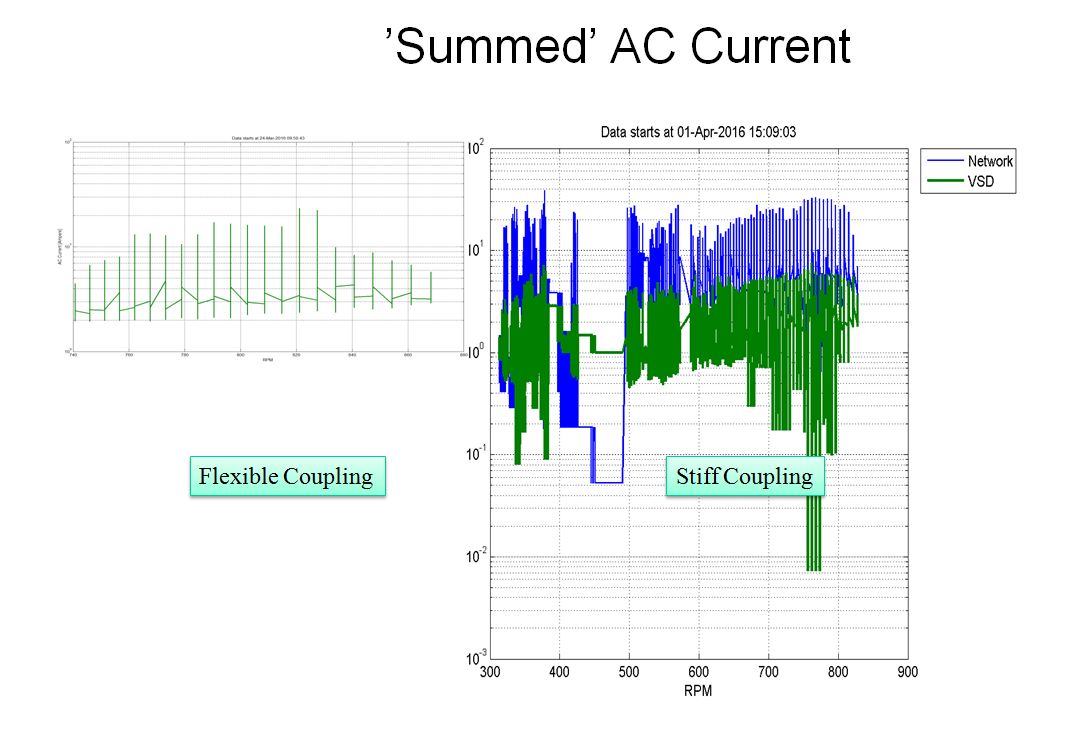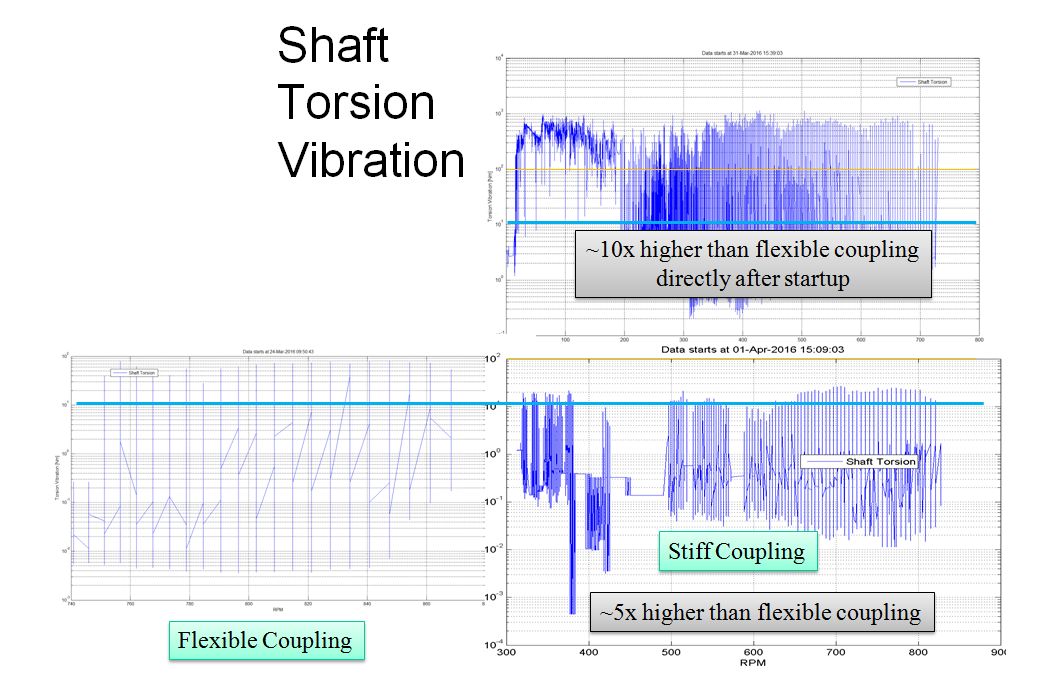 There are also signals that are proportional to torsion vibration. For example, we can measure the AC current in a motor or generator with Rogowski coils and use this measurement to determine the presence of torsion vibration and compare its strength between operational cases. This can serve as a “poor man’s” torsion vibration measurement system.