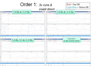 (B) Order FRFs from four different runs of the Flue Gas Fan