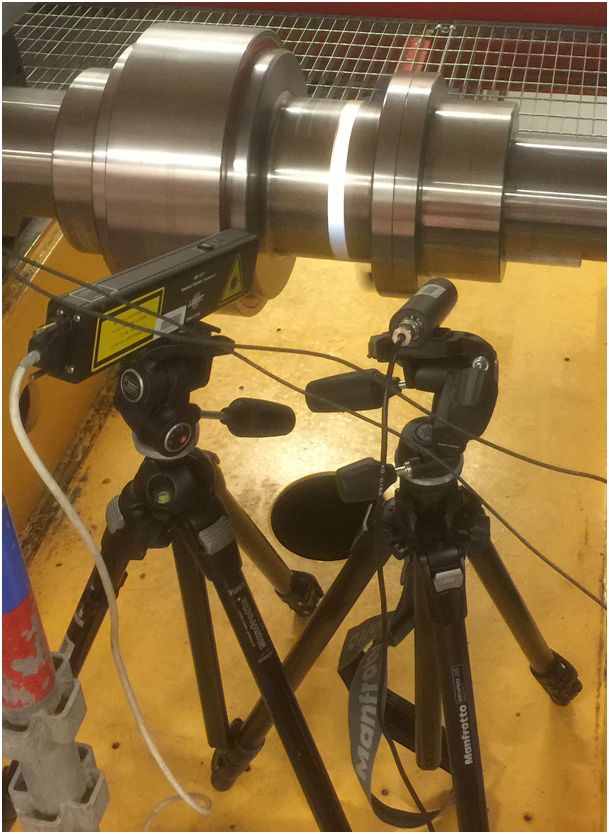 - A torsion laser using reflextape, where the difference between two laser beams is used to to determine torsion vibration, as seen in Figure 3.