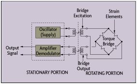 Figure 1. A & B) Torque measurement unit using strain gauges. Units like these can be calibrated, and are typical for permanent installations. For obvious reasons, they can be difficult to install while troubleshooting a machine. Also, a disadvantage is that this type of system usually relies on transfer of signals from the rotating shaft, though this is not necessary when encoders are used. Pictures from . C) Product example . (Click on picture to enlarge)