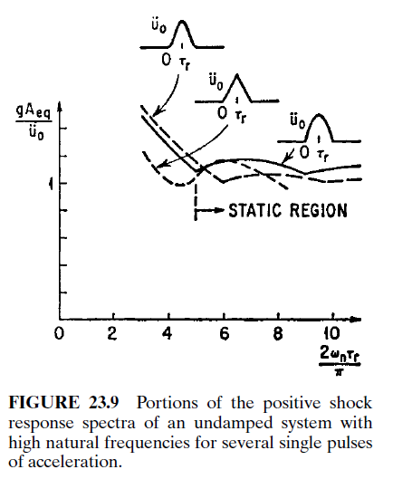 - A long duration/low frequency impulse transmits all force across the spring element and implies a small mass-base relative displacement, and a small load, as spring compression is small. It is the load magnitude and the system spring that govern the system response. l
