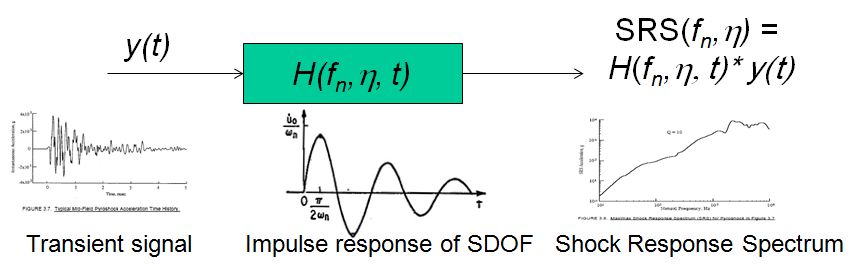 Next, imagine that we have a set of system modes, e.g. from Experimental Modal Analysis or from Finite Element analysis. The response of these modes can thereafter simply be scaled by the SRS and RS spectrum response to produce estimates for maximum vibration, maximum stress, interface load, and so on. This is a great simplifying step, as detailed analysis of the system response would be time consuming, and would also fail to produce conservative response/load estimates.